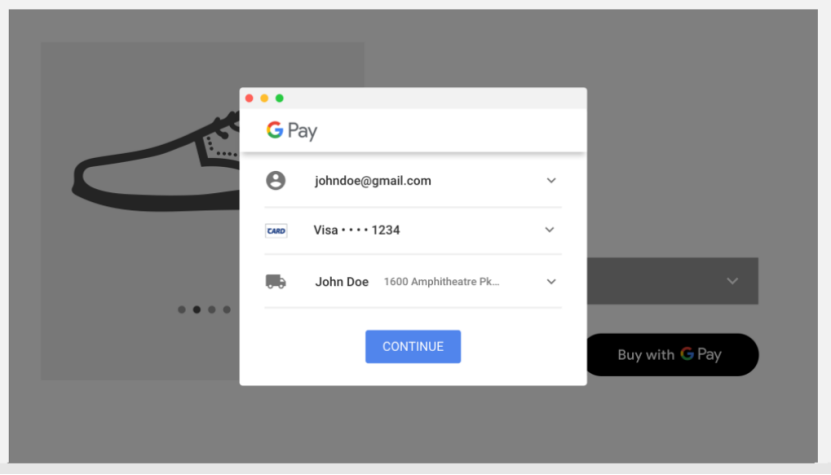 The example buyflow integrated with the Google Pay API